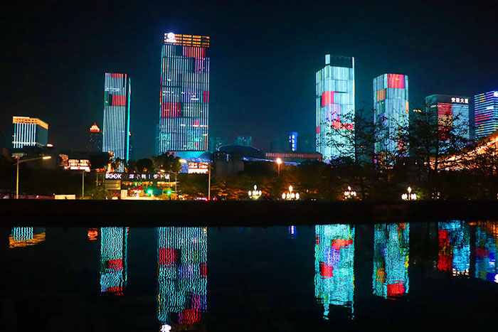 一般來說當(dāng)我們提到照明燈光秀的時候,一種是類似一江兩岸或一河兩岸等這樣的建筑媒體立面燈光秀,也有一海一岸等。在城市的尺度下,通過照明設(shè)計把建筑立面、街道、公共空間作為設(shè)計的載體,以立面、燈光投影、LED燈的信達智控進行一系列的照明控制的園林景觀燈光秀。第二種是依據(jù)園林景觀為載體配合當(dāng)?shù)仫L(fēng)土人情文化進行的燈光秀的演出,可以結(jié)合噴泉、水景、激光、3D投影、音樂等。