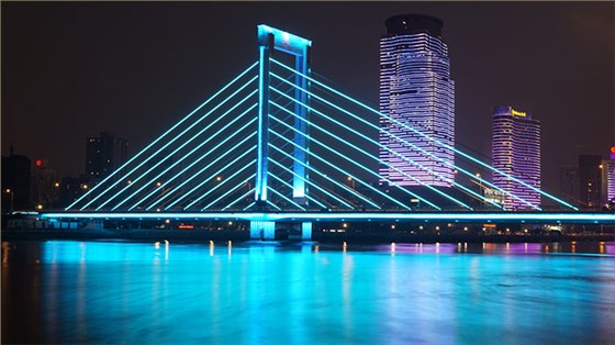 橋體照明在充分考慮岸上、橋上、車行、步行等不同人群的觀看范圍后,最終確定了照明方案,強(qiáng)調(diào)其景觀效果,達(dá)到視覺美學(xué),使人們無論是在遠(yuǎn)距離遙看,還是近距離觀看,都能夠感受到橋體所帶來的視覺美感。
