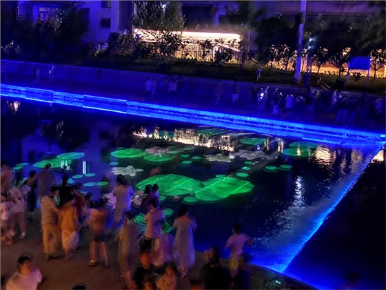 大陳江景觀帶音樂(lè)噴泉和水幕電影精彩呈現(xiàn),吸引了上萬(wàn)居民圍觀。