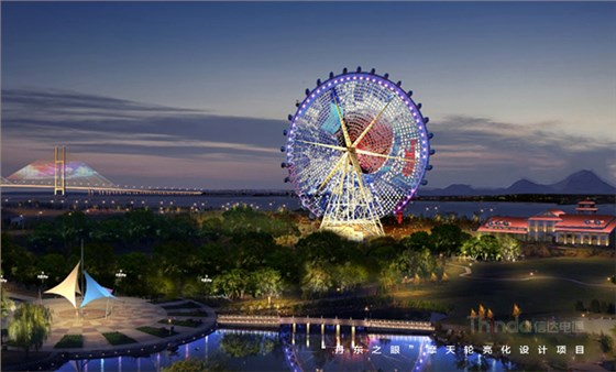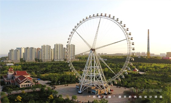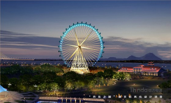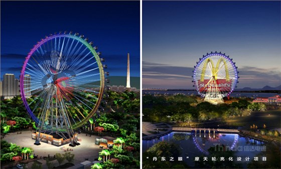 “丹東之眼”是中朝邊境一道亮麗的風景線,信達電通在設計中采用絢麗的燈光和濃重的色彩。設計師通過燈光的動態(tài)變化、光色的轉(zhuǎn)換,創(chuàng)造出一個歡樂、覽勝的燈光樂園。當夜晚降臨,彩燈閃爍,摩天輪一圈圈地劃過點亮丹東最美天際線,顯現(xiàn)出其非凡的魅力!