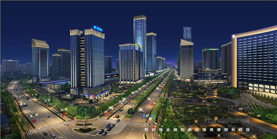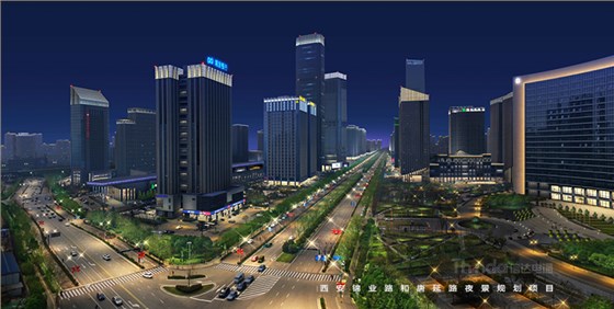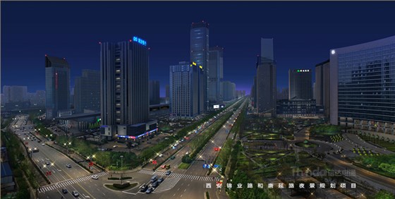 本項為西安高新區(qū)建筑景觀照明規(guī)劃設計中的一部分,地處于唐延路南與錦業(yè)路東交叉口,該視角可見建筑有都市之門、浦發(fā)銀行、綠地智海大廈、綠地筆克國際會展中心、陜西煤業(yè)化工集團、領海大廈、中鐵航空港假日酒店等,是高新區(qū)錦業(yè)路南端的重要位置,當車輛、行人抵達該位置時,視角寬闊夜晚可視范圍大,夜幕下的燈光也就更為重要。