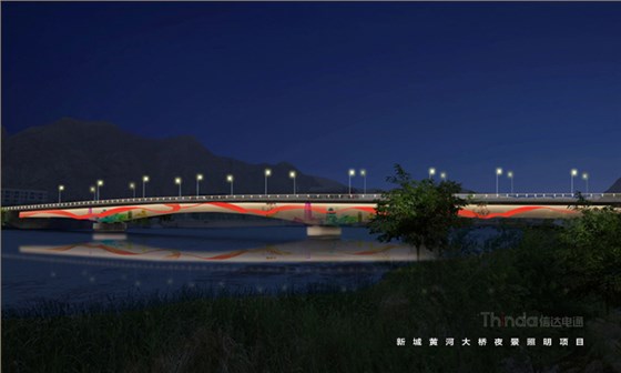 新城黃河橋是蘭州市對外交通西干線的重要樞紐,信達電通采用簡單的照明手法表現(xiàn)橋體的結(jié)構(gòu),凸顯橋體的敦實與厚重之感。暖黃光與彩繪圖案在橋底相繼呈現(xiàn),展現(xiàn)大橋的不同形態(tài)。