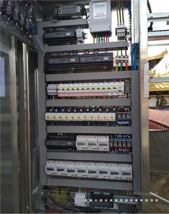大昭寺的整體照明控制采用信達科技自主研發的鼎立慧聯智能控制系統。控制系統采用手動、時間經緯度、4G智能照明等控制方式,控制模式分為節能、平日、節日三種模式,總控制室設定在管委會樓頂景觀照明控制室。大昭寺四周所有投光燈具使用DALI調光控制系統,主控設備具有RS485擴展接口,同時系統可通過電腦圖形化界面對所有的燈光進行集中控制監視。