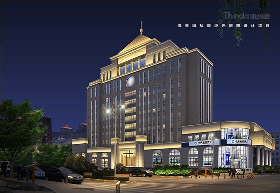 節能模式下的海關緝私局泛光照明,體現莊重沉穩的感覺。