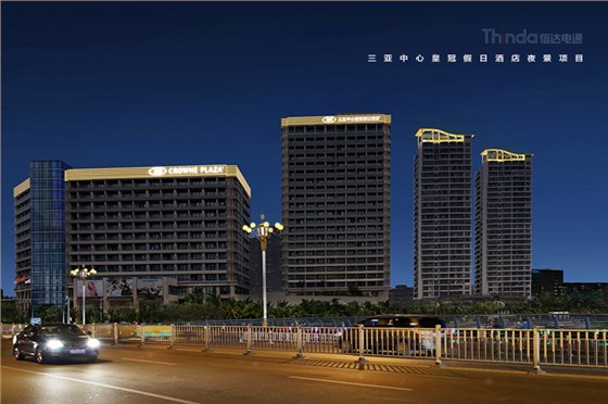 三亞中心皇冠假日酒店地處三亞市中心榆亞路,毗鄰景色秀麗的臨春河,與大東海沙灘及碧藍遼闊的中國南海近在咫尺;距離三亞鳳凰國際機場17公里,三亞火車站11公里,與鴻洲國際游艇會僅幾分鐘。周邊環繞活力四射的酒吧一條街,充滿時尚氣息的三亞國際購物中心,以及鹿回頭公園,三亞第一市場等眾多著名旅游景點。信達科技是三亞中心皇冠假日酒店外立面夜景照明的燈光設計商,此項目是三亞主城區夜景照明計劃規劃中的酒店亮化建筑,信達電通設計師團隊對此酒店外立面照明進行設計。