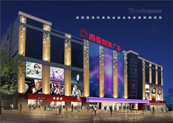 西亞和美商業廣場地處于河南省信陽市,位于東方紅大道、南臨北京南路、東臨統一街,周邊有鳳凰新世界、東方京城、軸線之廊,位置優越,交通便利。這里信陽人民平時生活娛樂與購物餐飲的地方,也是IGA中國區優秀零售商。目前商業廣場夜景照明已經跟不上整體的商業需求,急需進行照明設計施工改造升級,為此信陽西亞和美業主聯系到信達科技,雙方根據本案開展照明設計施工合作。