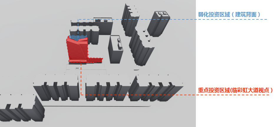 信達(dá)電通將彩虹大道視點(diǎn)立面作為重點(diǎn)亮化和設(shè)計區(qū)域,興賢路和東虹路視點(diǎn)立面進(jìn)行輔助照明設(shè)計。