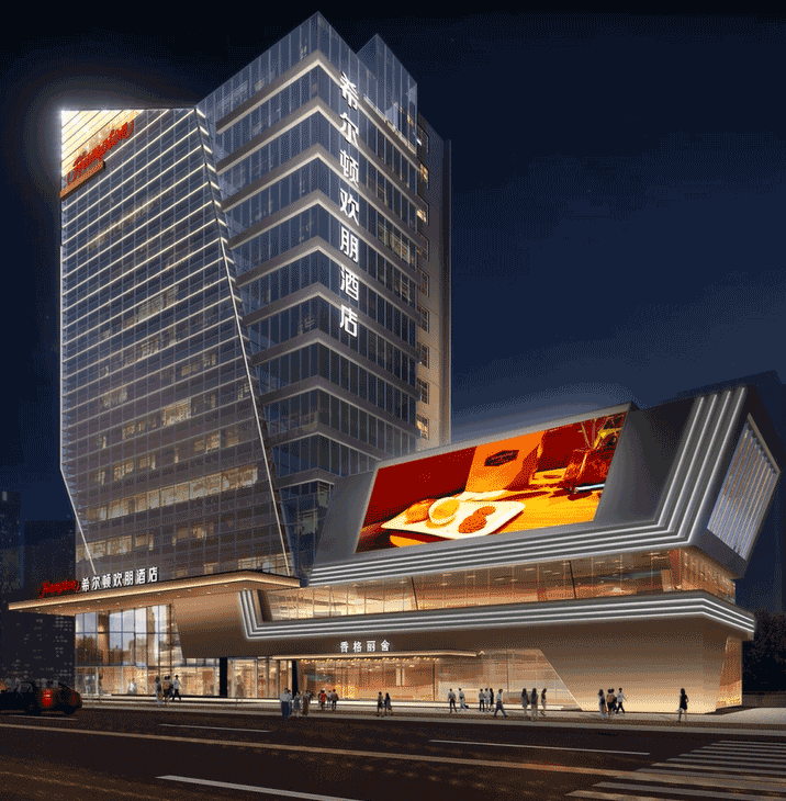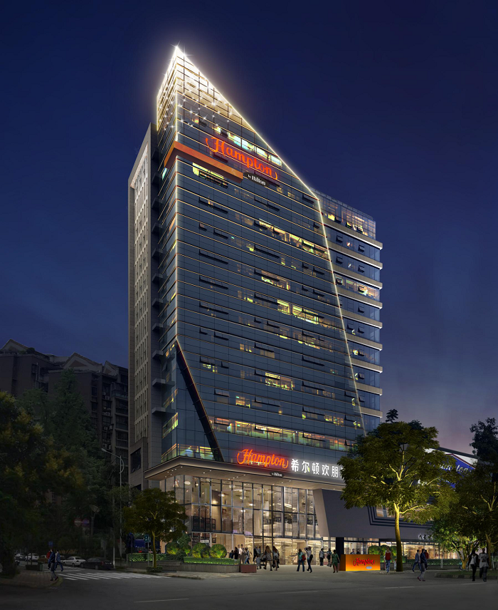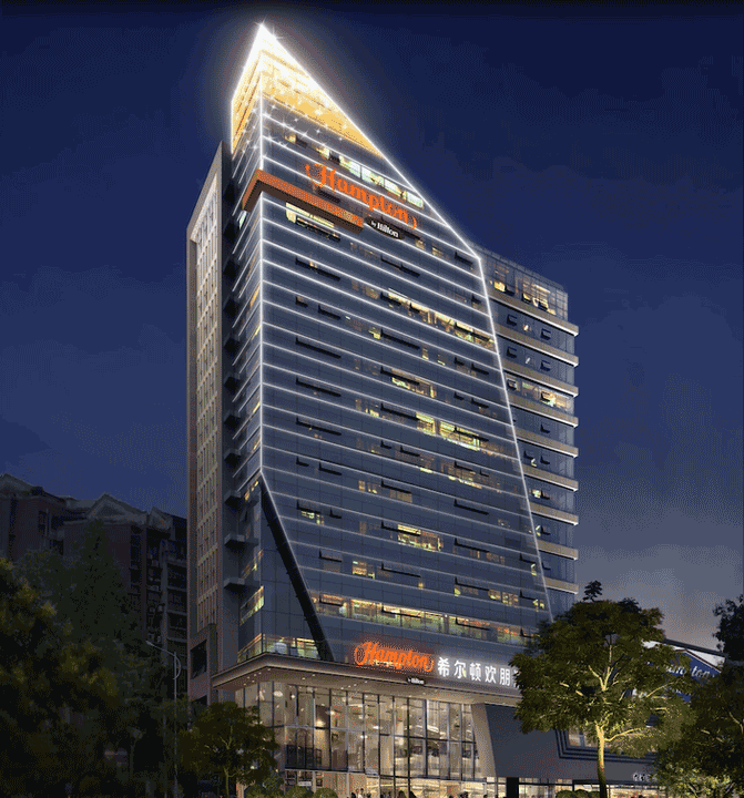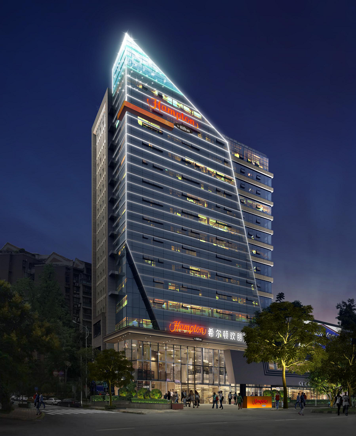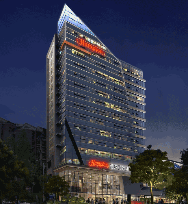 都江堰希爾頓歡朋酒店是一座以希爾頓為主題品牌的高端酒店,信達(dá)電通對其進(jìn)行整體夜景照明設(shè)計。