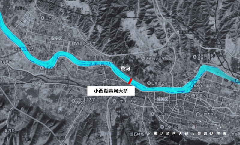 小西湖黃河大橋位于蘭州市七里河區(qū)濱河路黃河風(fēng)情線中段,夜景提升前,大橋燈具脫落、管線外露,影響大橋形象。照明設(shè)計(jì)中,信達(dá)采用藍(lán)、白等至純純之色,體現(xiàn)橋體的晶瑩剔透,純凈如水,晶瑩如露。