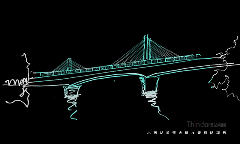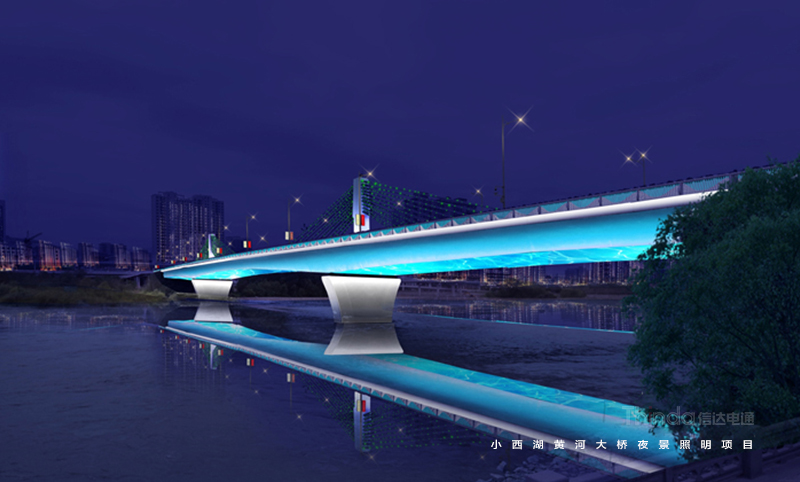我們可以通過圖片觀察到橋梁上的燈具部分有脫落現(xiàn)象,而且線纜外露有安全隱患并且影響美觀。在小西湖黃河大橋照明設(shè)計(jì)中我們采用藍(lán)、白白至純之色,體現(xiàn)橋體的晶瑩剔透,純凈如水,晶瑩如露珠。
