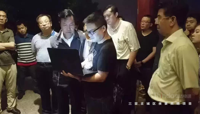 信達電通不僅全力做好前期設計工作,還全力幫助配合施工方,一起完成三亞照明亮化改造工程。施工期間,海南省委常委、三亞市委書記張琦帶隊,冒雨檢查城市夜景亮化工作,并在現場行聽取信達電通設計總監孫彥飛對三亞城市夜景燈光升級改造工程項目進展情況匯報。