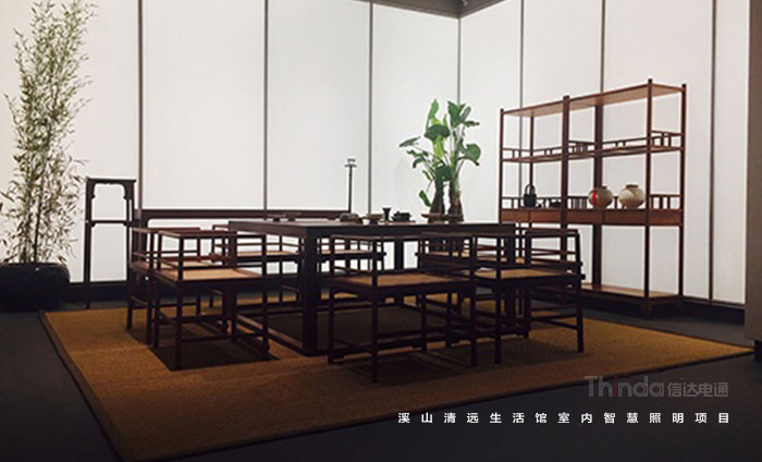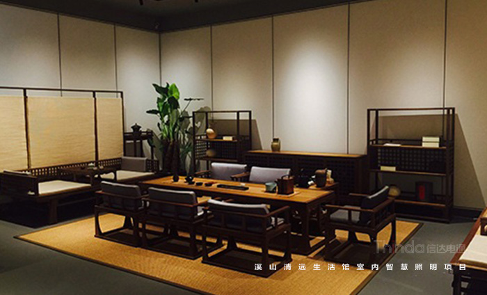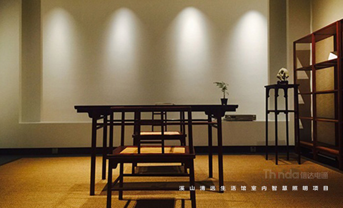 溪山清遠生活館是其公司在北京朝陽區設立的明式、宋代家具主題生活館。溪山清遠探究家具,是探究一種回歸。俗韻已行,塵網誤落,陶淵明欣慨之意,宜適今日。看紛紛擾擾,無休無歇,勞心廢形,永無止息。溪山清遠就是在居住意境上去建設一條回歸的曲徑,精簡,守靜,歸真。信達電通是溪山清遠生活館室內空間照明的設計及施工、控制系統一體化服務單位。