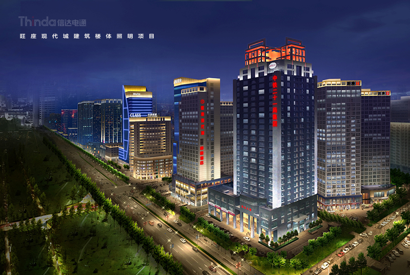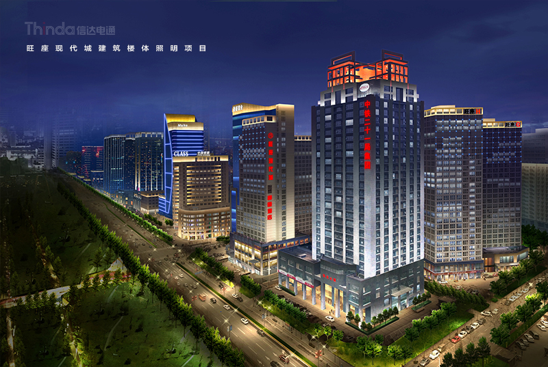 旺座現(xiàn)代城就位于西安的核心區(qū)域——高新區(qū),是一組大型商務(wù)辦公綜合空間群落,信達(dá)設(shè)計(jì)團(tuán)隊(duì)在旺座現(xiàn)代城的夜景照明設(shè)計(jì)中增加建筑輪廓及頂部的照明,尊重建筑的結(jié)構(gòu),凸顯建筑特點(diǎn)。因現(xiàn)代城地理位置繁華,信達(dá)為其設(shè)計(jì)了節(jié)日模式、平日模式和節(jié)能模式三種亮燈方案。其中節(jié)日模式選擇洗亮旺座現(xiàn)代城的建筑頂部,其次用白色的洗墻燈照亮整個(gè)建筑的外立面輪廓,選用信達(dá)自主知識(shí)產(chǎn)權(quán)的產(chǎn)品星光燈點(diǎn)綴,給旺座現(xiàn)代城增加了濃濃的節(jié)日氣氛。